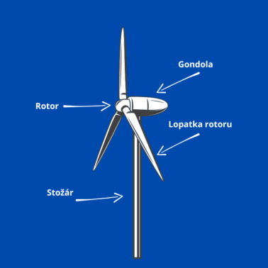 Větrná elektrárna se skládá z několika hlavních částí. Základ tvoří věž, která podporuje celou konstrukci a zajišťuje potřebnou výšku pro efektivní zachytávání větru. Na vrcholu věže je umístěn rotor s lopatkami, které vítr roztáčí. Rotor je spojen s hřídelí, která převádí mechanickou energii na generátor, jenž vyrábí elektřinu. Dále je zde převodník a transformátor, které upravují napětí před přenosem do sítě. Součástí systému je také řídicí jednotka pro optimalizaci výkonu.